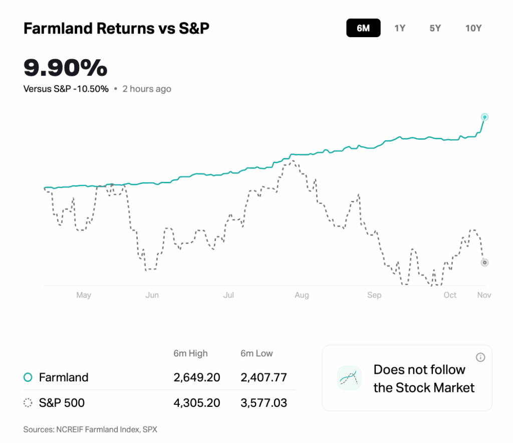 From an investment standpoint, Farmland is a way to diversify your portfolio and hedge against inflation. Inflation reached over 8% this year, so it’s understandable if you’re not eager to invest more of your dough in stocks.