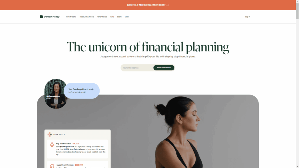 Domain Money embraces your financial aspirations as their mission. The service begins with you and a CFPⓇ professional having a heart-to-heart about your goals and crafting a personalized financial plan. Your advisor stands by you, adjusting the plan as life happens, ensuring the journey to your financial dreams is clear, manageable, and tailored to the unique narrative of your life.