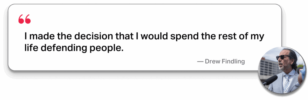 Drew Findling burst onto the criminal defense scene in 1984 as a public defender. In his first few years as an attorney, he became the first to successfully present the Battered Woman Syndrome defense using only verbal abuse as evidence.
