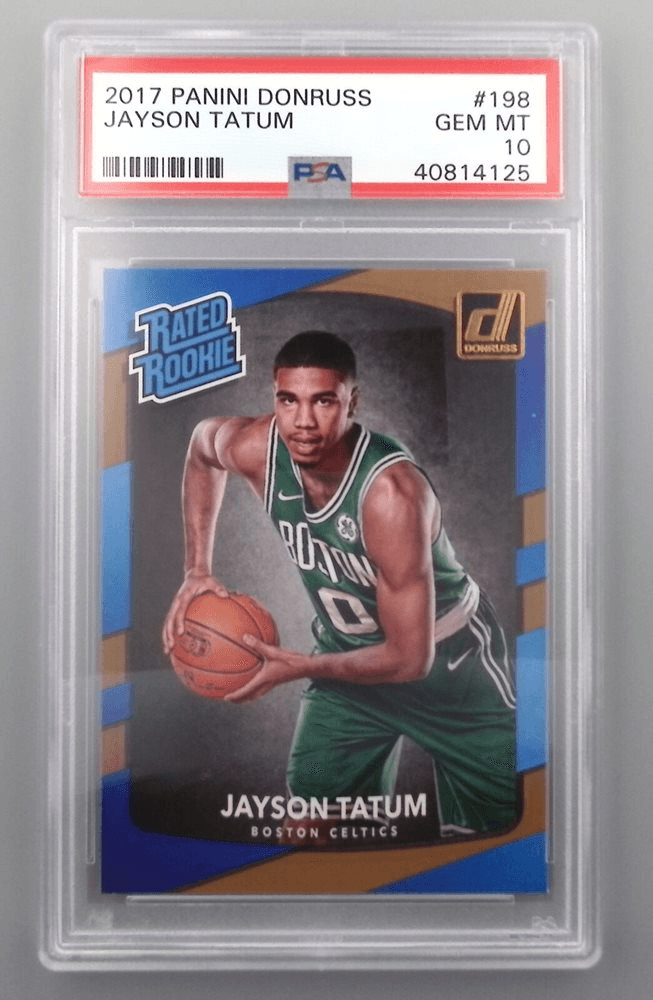 It’s one of the first mainstream cards of Tatum in his Celtics uniform. Prices range from $120 for near-mint and mint cards to upwards of $400 for cards in gem mint condition.