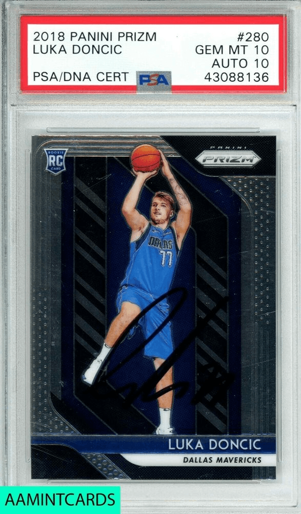 Virtually every basketball collector has considered copping a 2018 Panini Prizm Luka Dončić #280 rookie card—it captures Luka extending for a stunning fadeaway shot. In October 2020, a eBay auction saw a PSA 10 example change hands for $8,000, an all-time high for this iconic card.